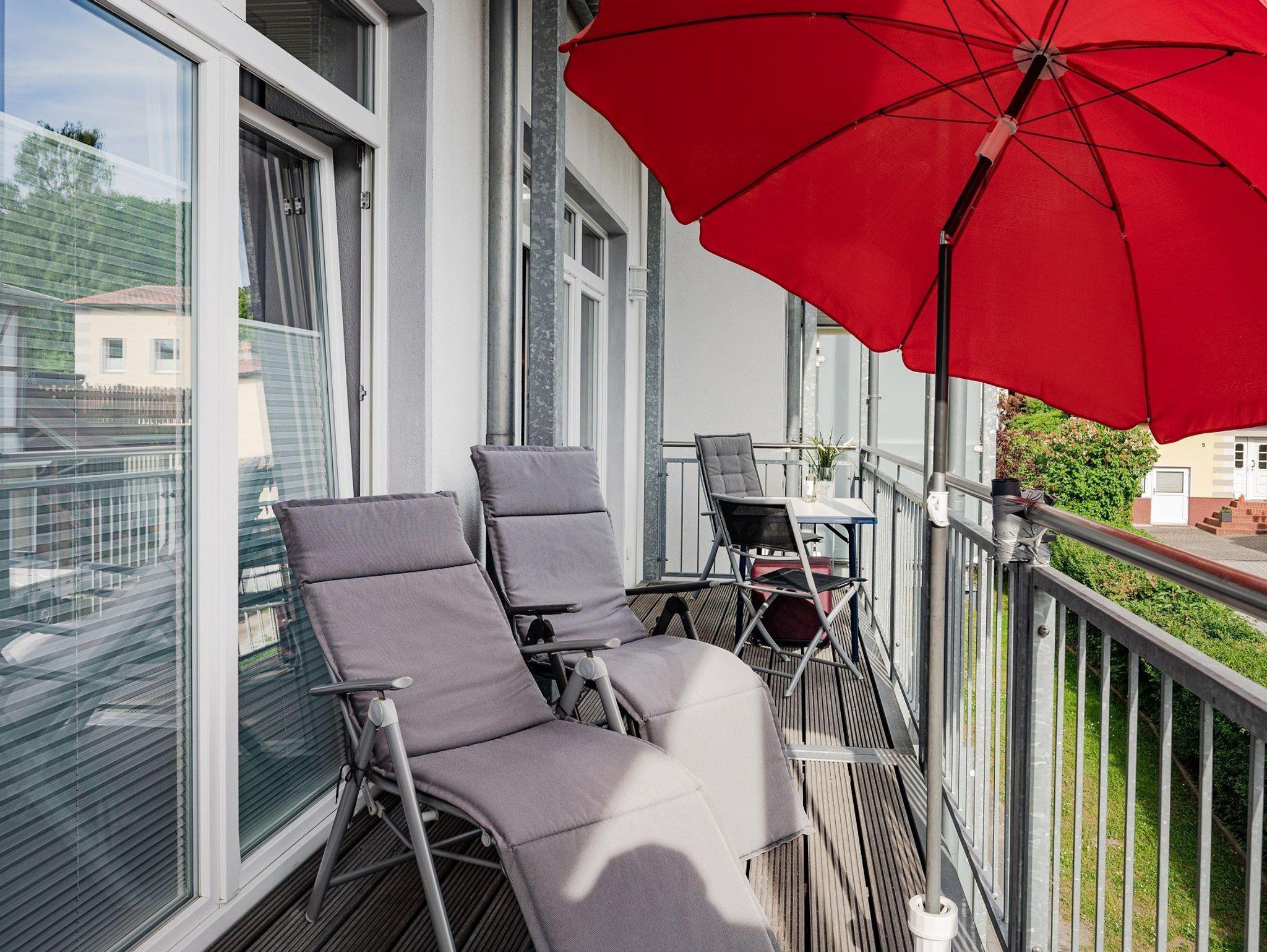 Lassen Sie den Abend nach einem erlebnisreichen Tag gemütlich auf dem Balkon (Südseite) ausklingen und genießen Sie die idyllische Ruhe.