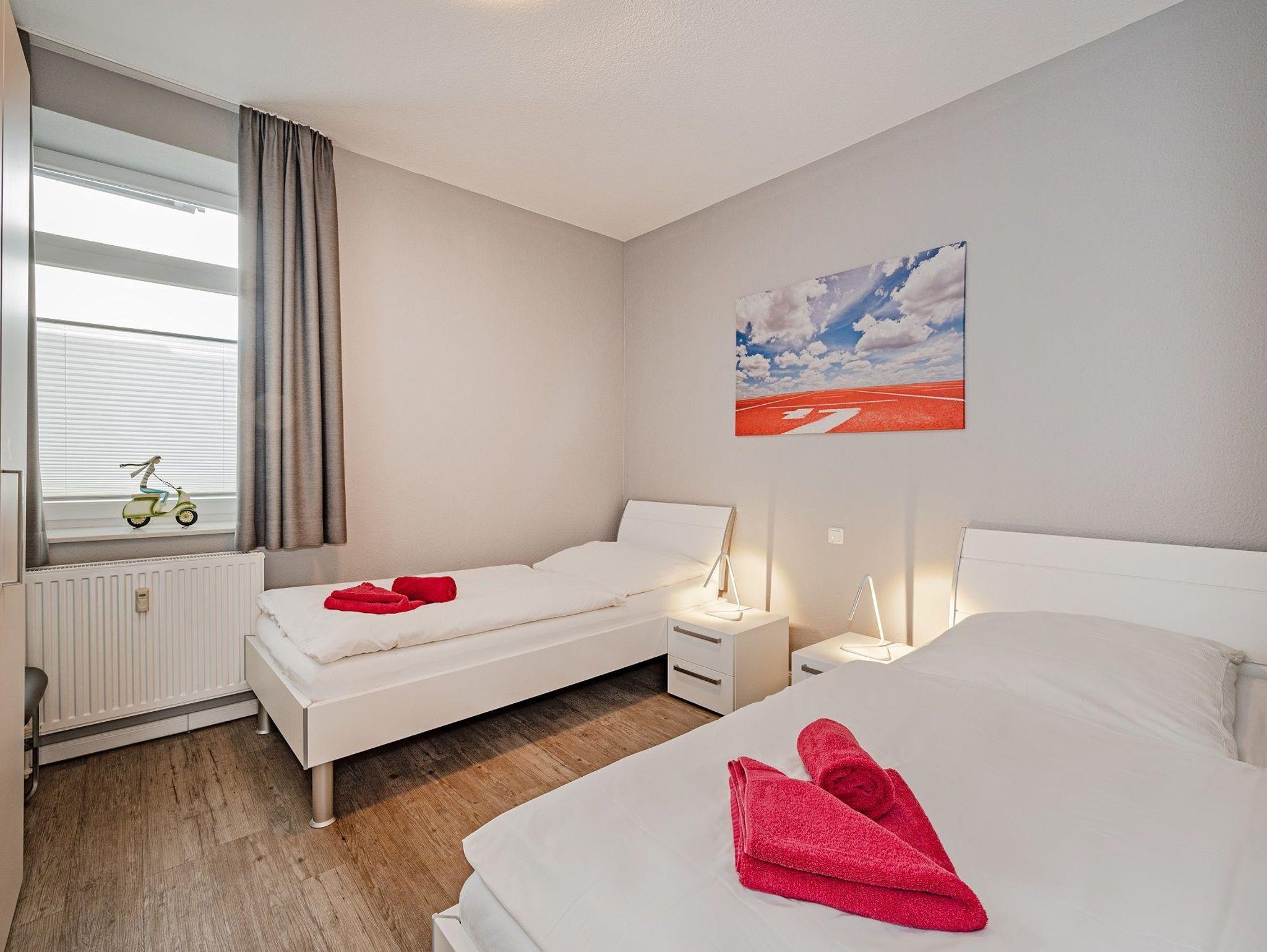 Das zweite Schlafzimmer ist mit zwei Einzelbetten ausgestattet.