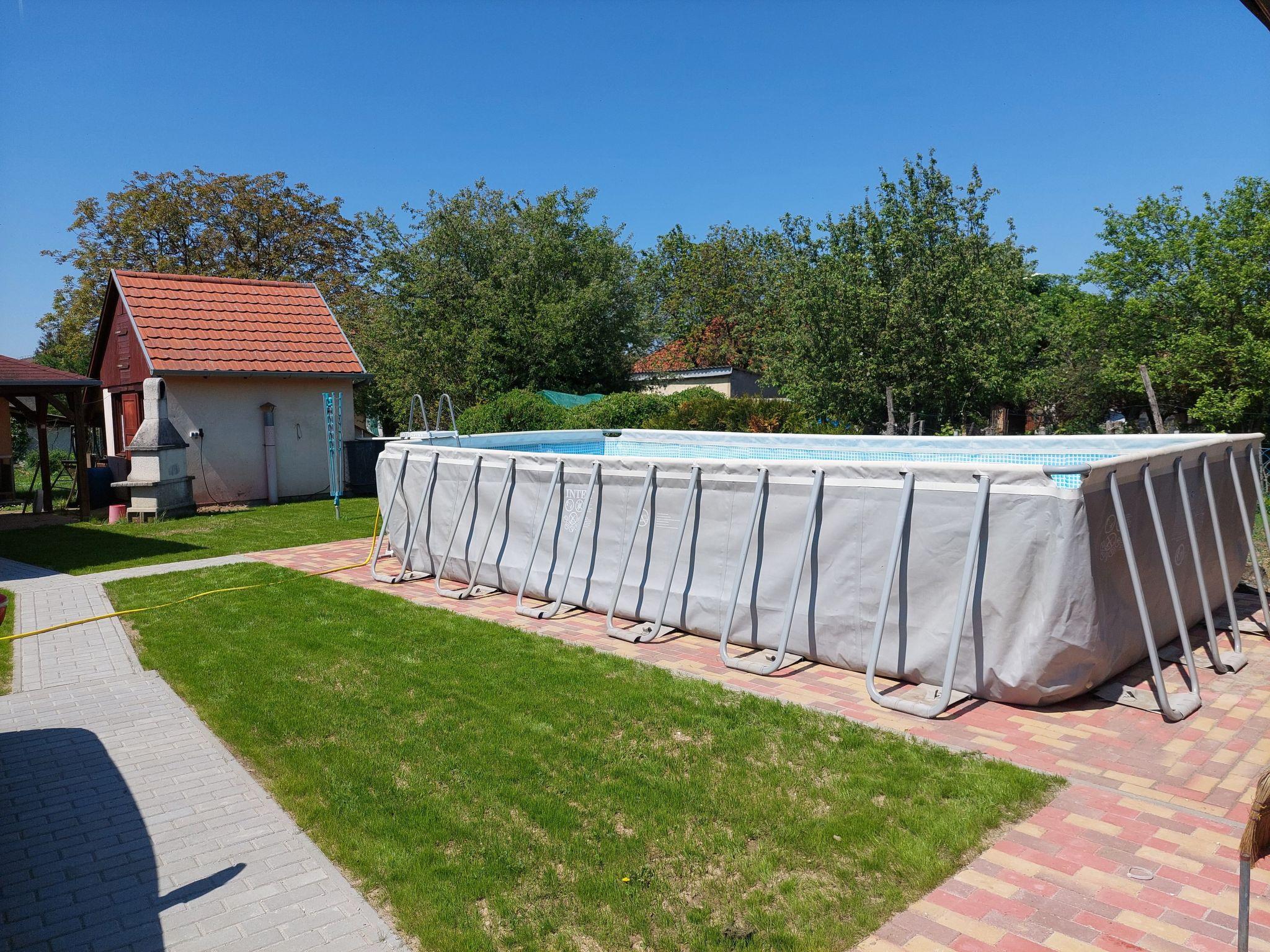 The holiday home with pool is located in Balatonmariafürdö on the south shore for your exclusive use.700 square metres of enclosed garden with a partial hedge and completely surrounded by a fence and house wallPool: Pool dimensions 7.32 x 3.66 x 1.32 Pool maintenance and service is provided by the landlord who will be happy to help you with any questions. Pool open continuously from the beginning of May to the end of September Garden equipment: Garden tables, garden chairs and barbecue area and a covered garden pavilion Garden swing. There are also several secure parking spaces in the property (outdoor area). The house is designed for up to 6 people and comprises approx. 90 square metres of living space: Dining room for 6 people, German-language satellite TV can be darkened (roller blinds) Kitchen: A functional kitchen, 4-burner electric hob and oven, extractor bonnet, fridge with freezer compartment, microwave, coffee machine, toaster, kettle and dishwasher. Please bring your own tea towels and hand and bath towels. 3 bedrooms with 3 queen-size beds each, bathroom: very nice bathroom with shower, washbasin, bidet and WC, with daylight through a window, washing machine for a fee per wash cycle Surroundings: in a quiet side street, shops and restaurants nearby all year round, thermal baths in Zalakaros, Csiztapuszta and Heviz also within easy reach and also all weekly markets.