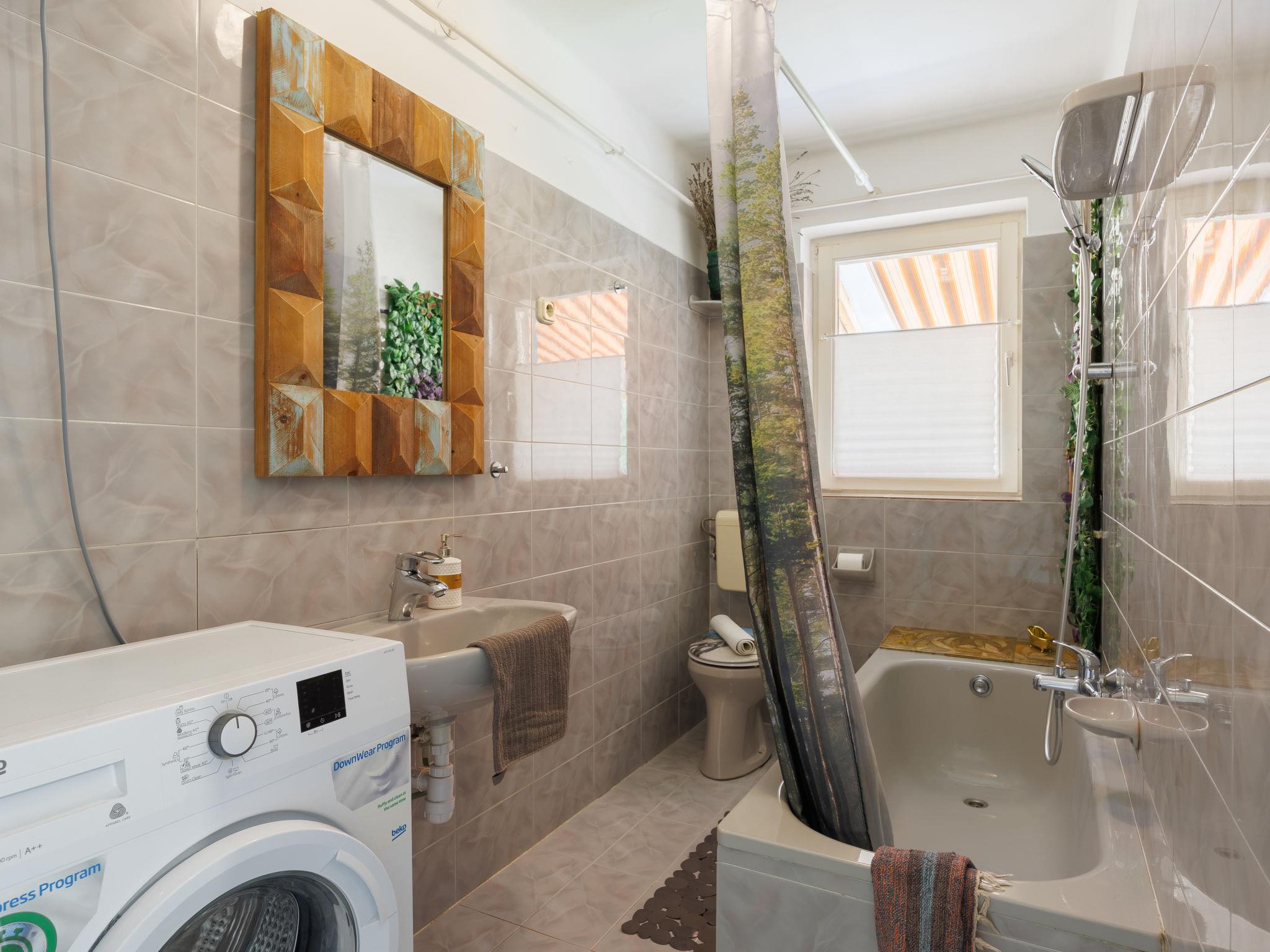 "Violetta 3", 3-room semi-detached house 80 m2 on 2 levels. Partly renovated in 2022, practical furnishings: living room with cable TV. Exit to the terrace. Open kitchen (4 hot plates, oven, dishwasher, toaster, kettle, microwave, freezer, electric coffee machine). Exit to the terrace. Bath/WC. Heating, air-conditioning (extra). Heating not available in all rooms. Upper floor: 1 room with 3 beds. 1 room with 1 french bed. Exit to the balcony. Bath/WC. Terrace furniture, balcony furniture, deck chairs. Facilities: washing machine. Parking (fenced). MA20017757