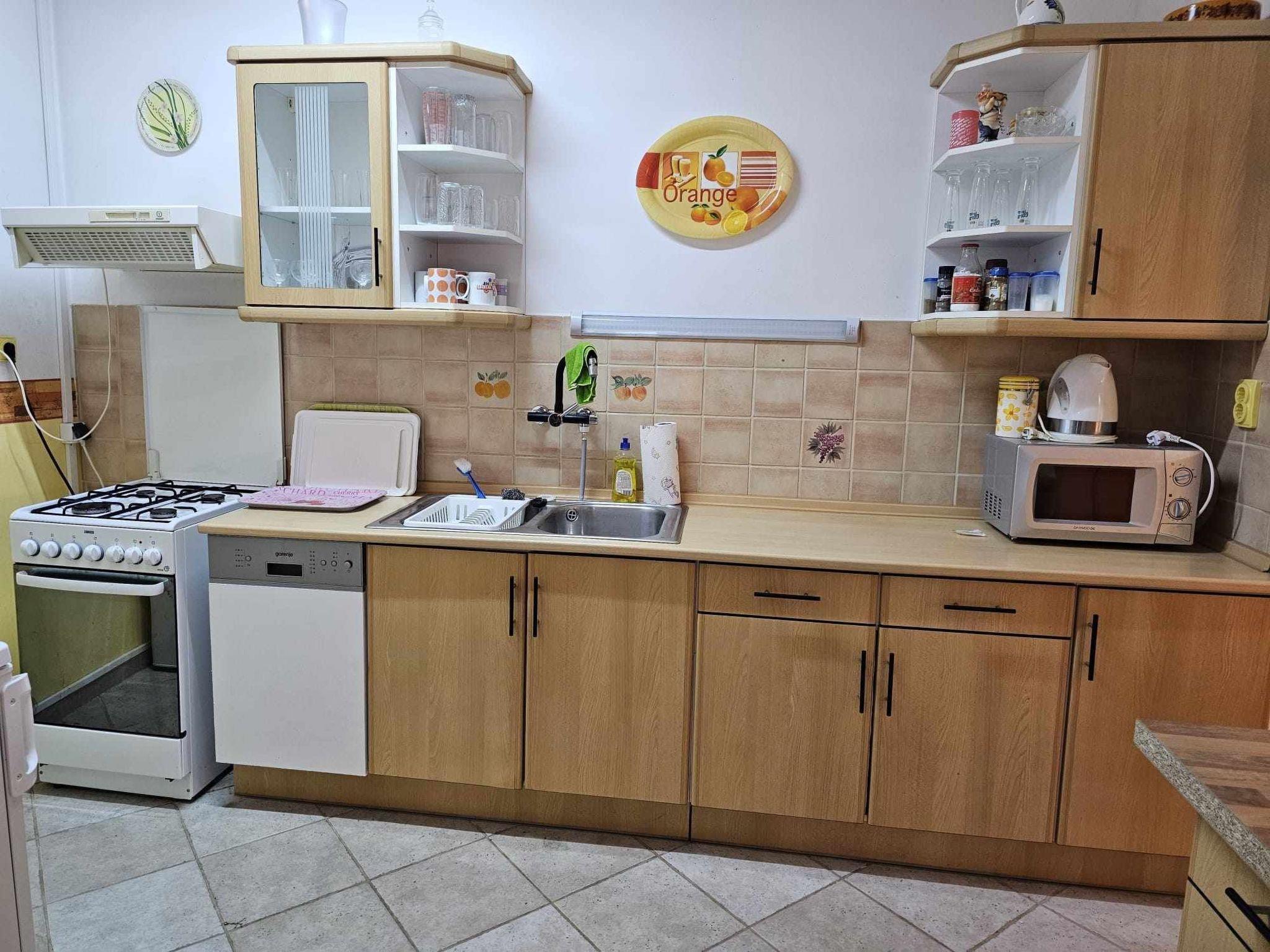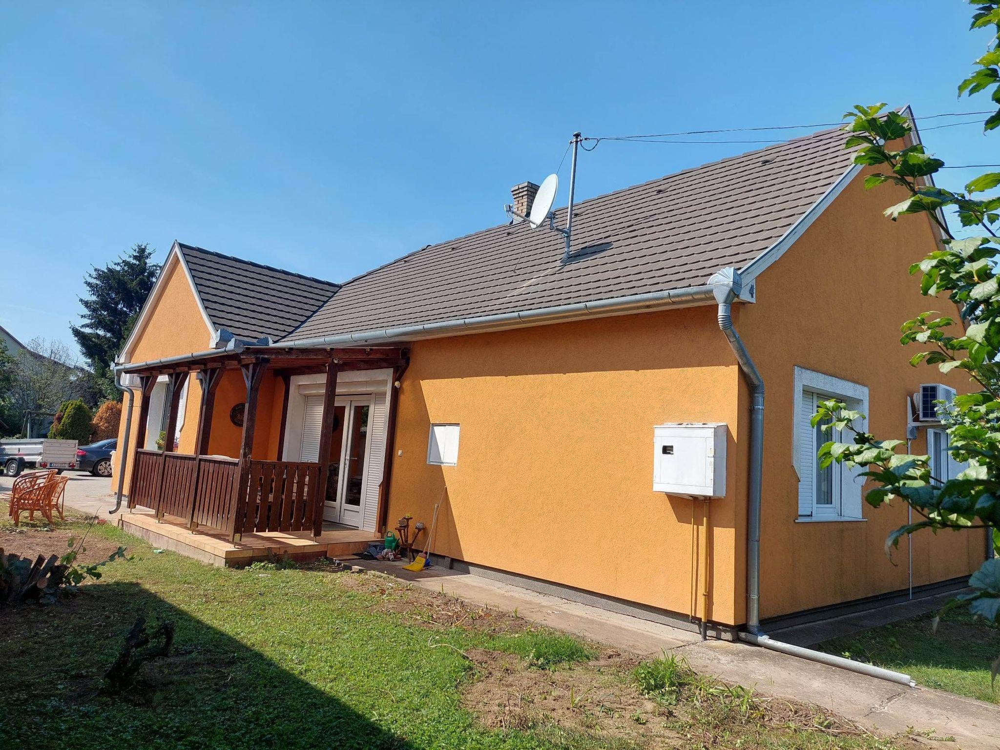 Beautiful holiday home in Balatonszentgyörgy on the south-western shore of the beautiful Balaton for up to 6 people.it is for your sole use.the house is in a 1000 square metre, enclosed garden plot with a partial hedge and completely surrounded by a fence and house wall.with outdoor pool, which will be built this year.pool dimensions 8 x 3 x 1.50 m The pool maintenance and pool service is provided by the landlord, who will be happy to help you with any questions you may have about the area, country and people, money exchange, etc..Garden equipment:Garden table, garden chairs, parasol, sun loungers and barbecueUp to 4 secure parking spaces in the property (outdoor area).The house is designed for up to 6 people and comprises approx. 100 square metres of living space.living units:Winter garden with tarpaulin to openA further small terrace.Kitchen:A kitchen with, 4 burner gas hob, electric oven, extractor bonnet, microwave, coffee machine, toaster and kettle, various crockery and cutlery and a seating area and German SAT TVBathroom:Very nice bathroom, bathtub with shower function, washing area and washing machine, daylight.1 Separate WC,1st bedroom with king-size bed, air conditioning, wardrobe, blackout blinds and German SAT TV2. Bedroom with king-size bed, air conditioning, wardrobe, blackout blinds and German SAT TV3. Bedroom with 2 single beds or pull-out couch, air conditioning, wardrobe, darkenable (roller blinds)1 living room with small seating area and tiled stove.in all 3 bedrooms is German satellite TV.Internet: WLANShopping facilities nearby approx. 100 mAll-year restaurant approx. 100 mBalaton approx. 4 km away Bicycle rental from the landlord on requestIn the photo where the leather suite is shown, a king-size bed is used instead of the leather suiteThe pool opening hours are from 1 May to 30 September Thank you for your interest.