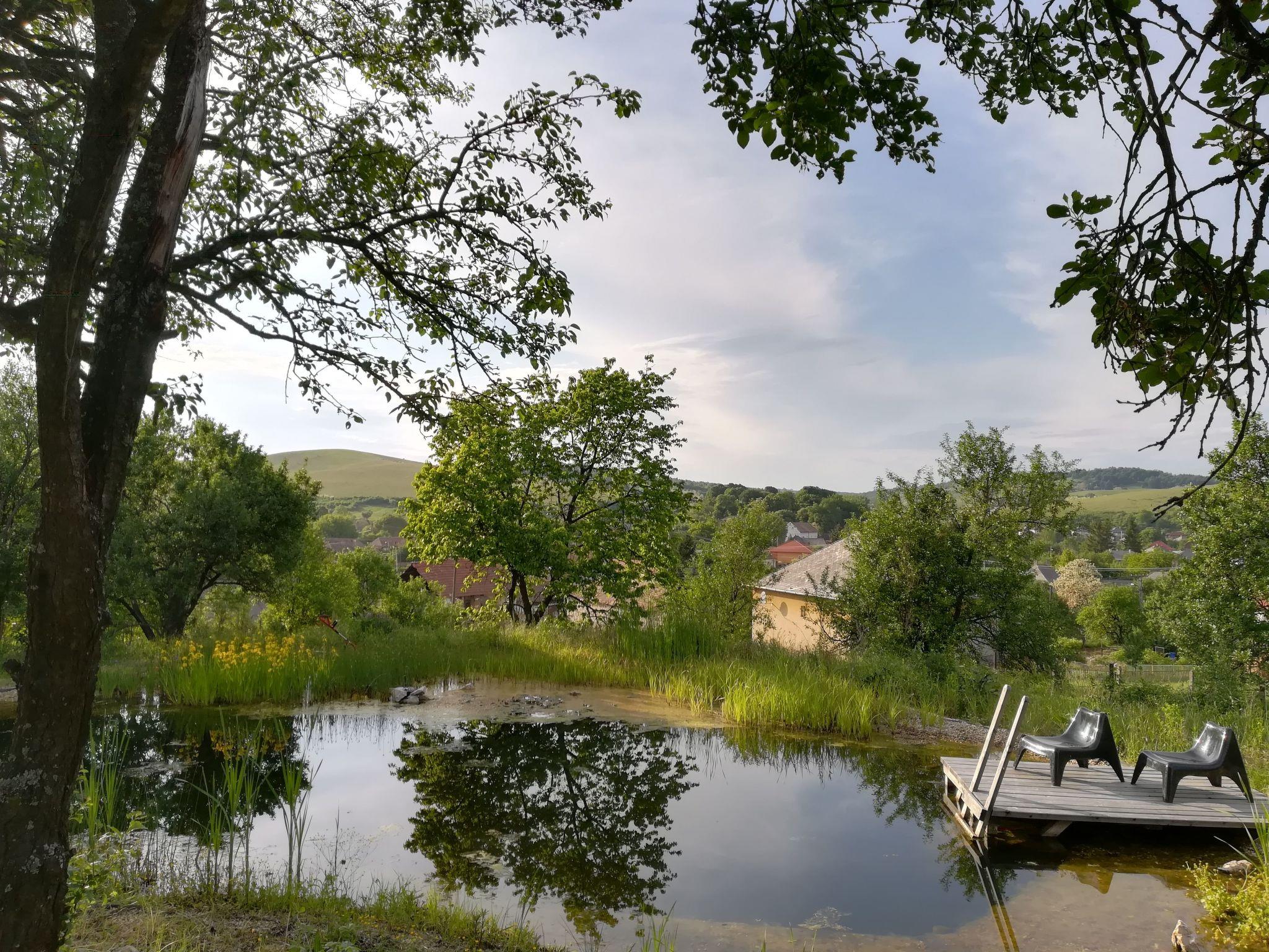 From the covered terrace you have a view of the 84m2 organic swimming pond. It is purified by plants. There is a large dining table on the terrace with 10 chairs. There are also 6 low garden chairs and 2 wicker loungers. In the garden there are 2 more garden benches. The garden has many fruit trees such as apples, pears, cherries and walnuts.