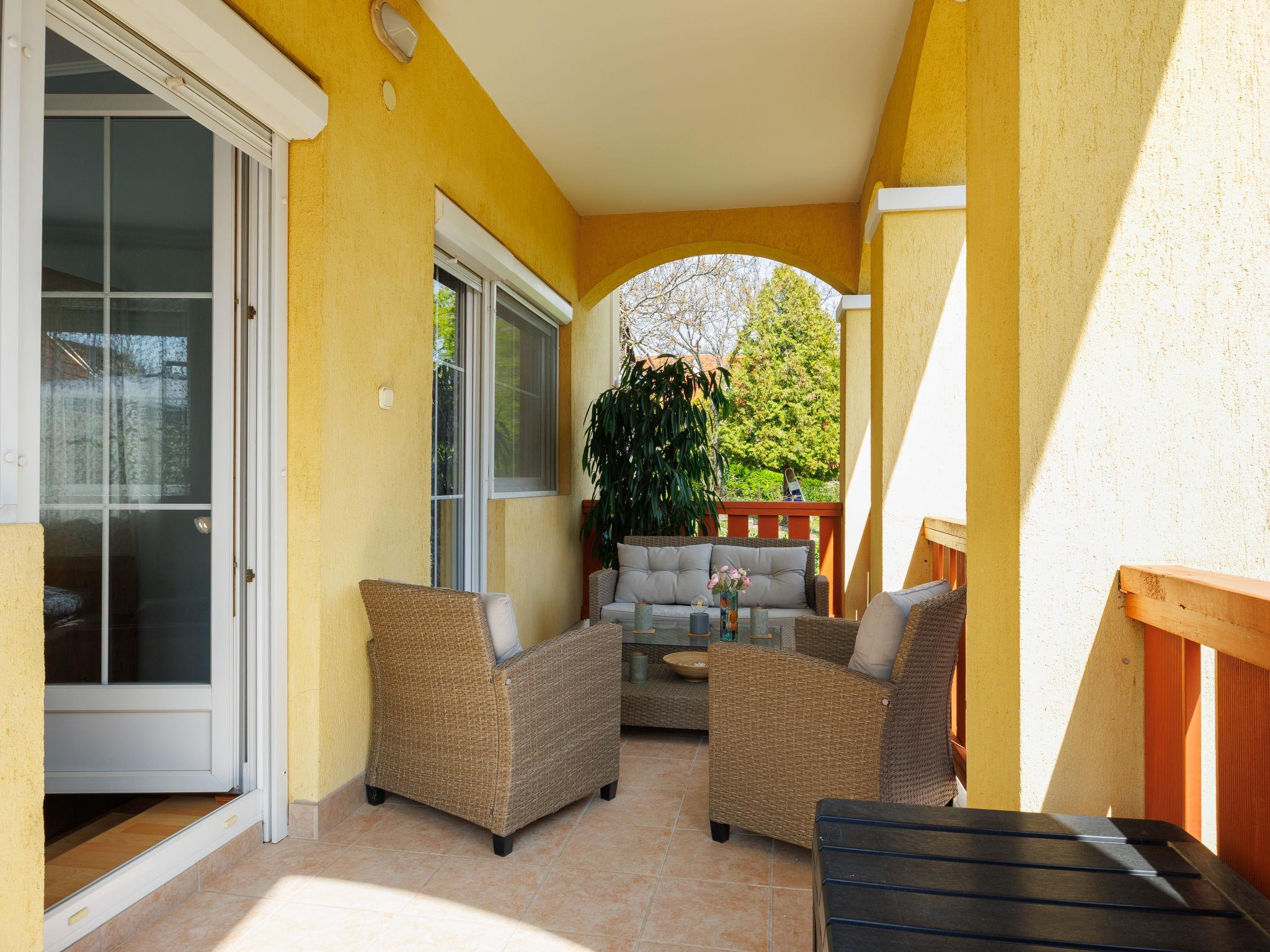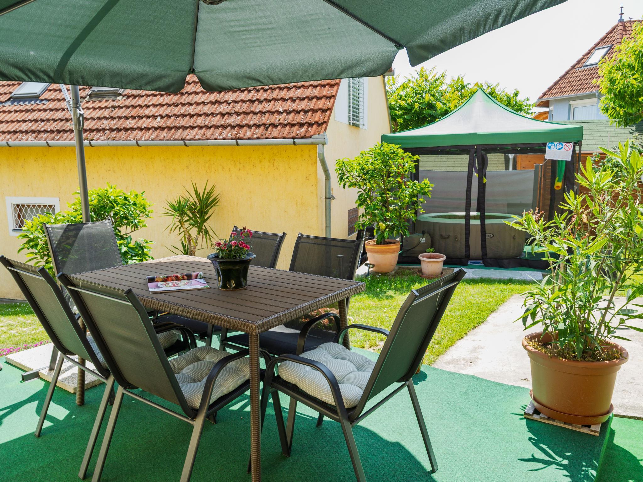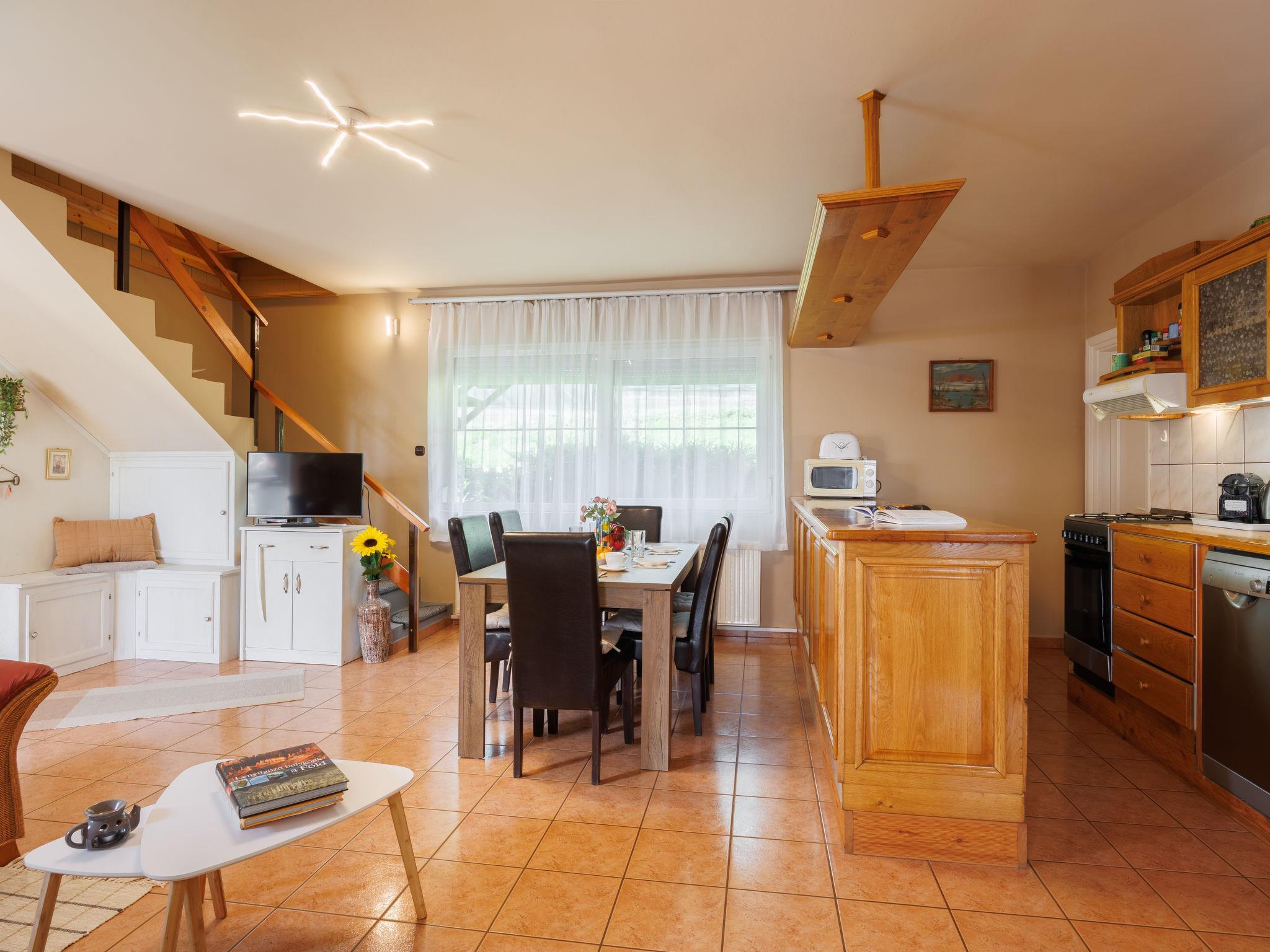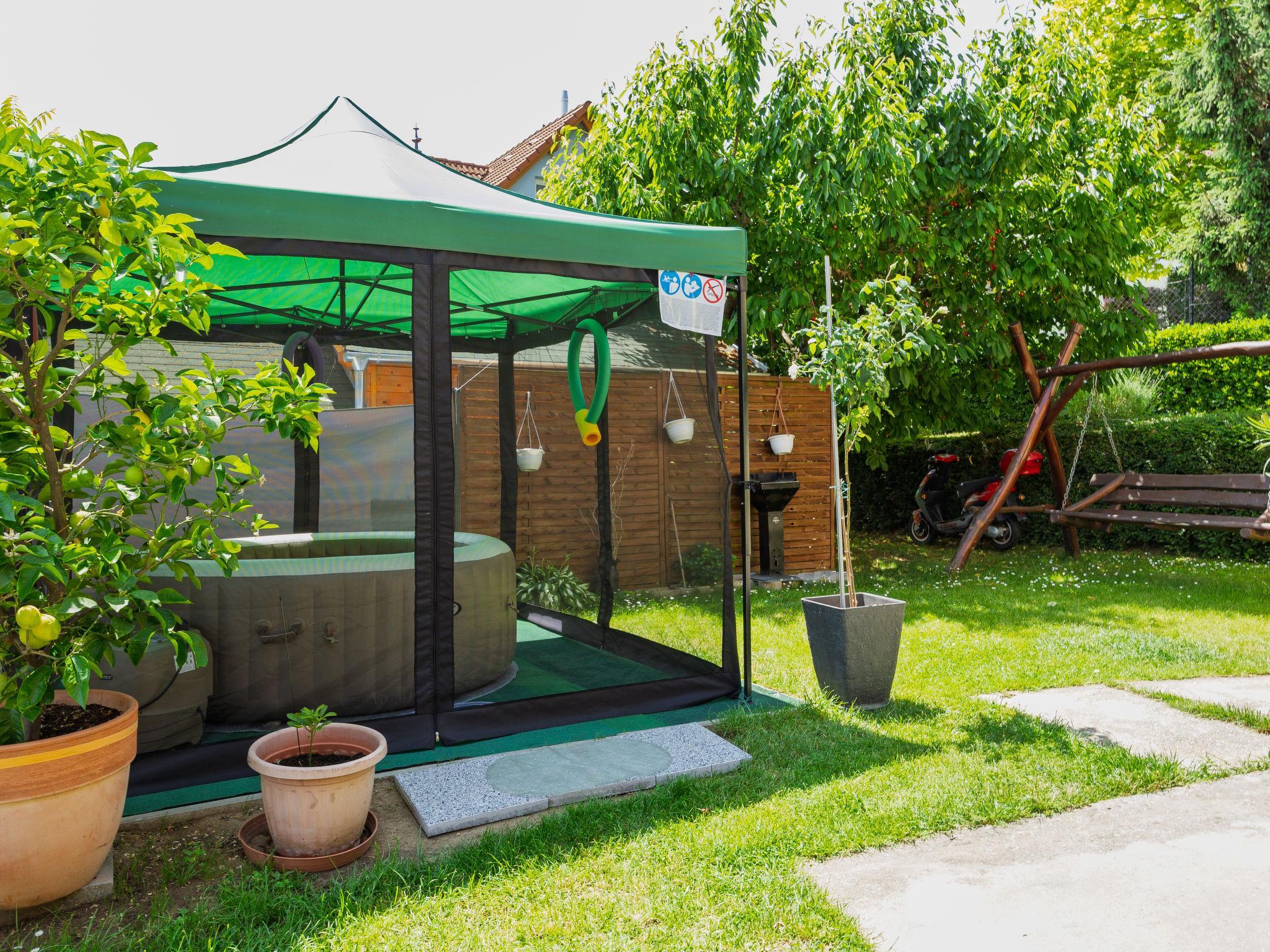 Fonyód 12 km from Balatonlelle: Please note: The first hour of sauna use is free. Cosy 2-family house. In the resort, in a sunny position in the residential district, 820 m from the lake, 1 km from the beach. For shared use: property (fenced), well-kept garden, lawn for sunbathing. Private: hot tub, garden furniture, barbecue (sandbox). In the house: WiFi, sauna (extra). Air conditioning, washing machine. Parking on the premises. Grocery 900 m, supermarket 1 km, bakery 1 km, bicycle rental 1 km, railway station 1 km, thermal baths "Igal" 57 km. Tennis 9 km, riding stable 8 km, cycle lane 900 m, children's playground 1 km. Nearby attractions: Kis-Balaton Visitor Center 38 km, Balatonlelle Ferris wheel 12 km, Festetics Castle 42 km, Zamárdi Adventure Park 46 km, Kristinus Wine Estate 30 km, Bella Zoo Siófok 59 km. Please note: the owner lives in the same residence.