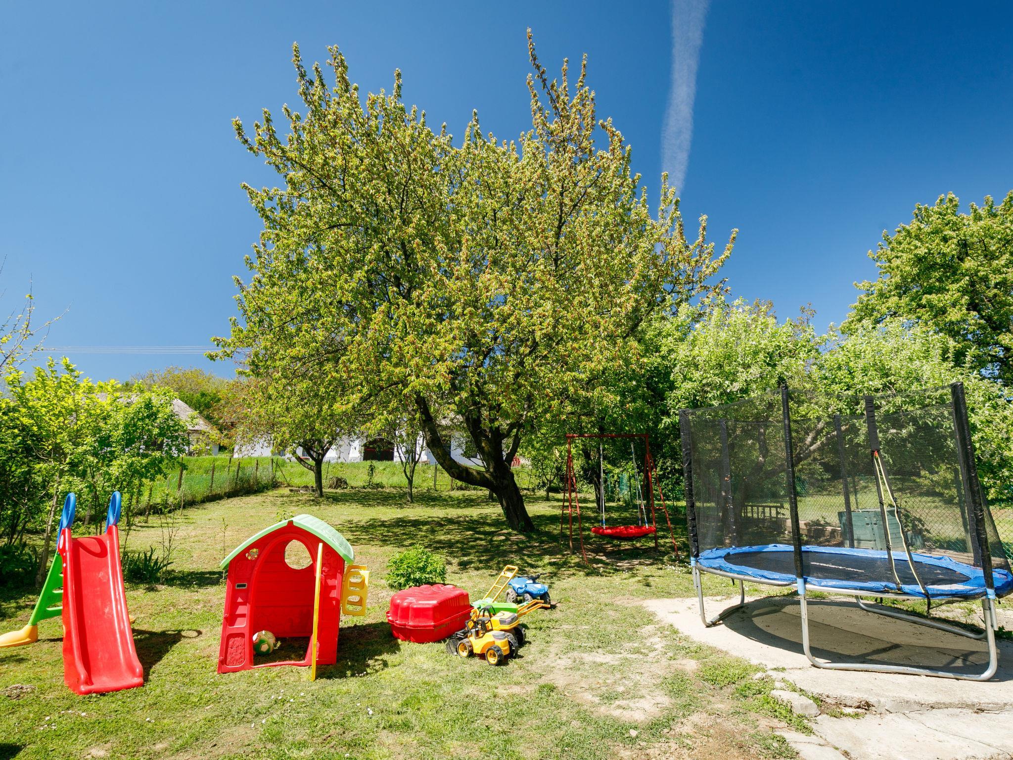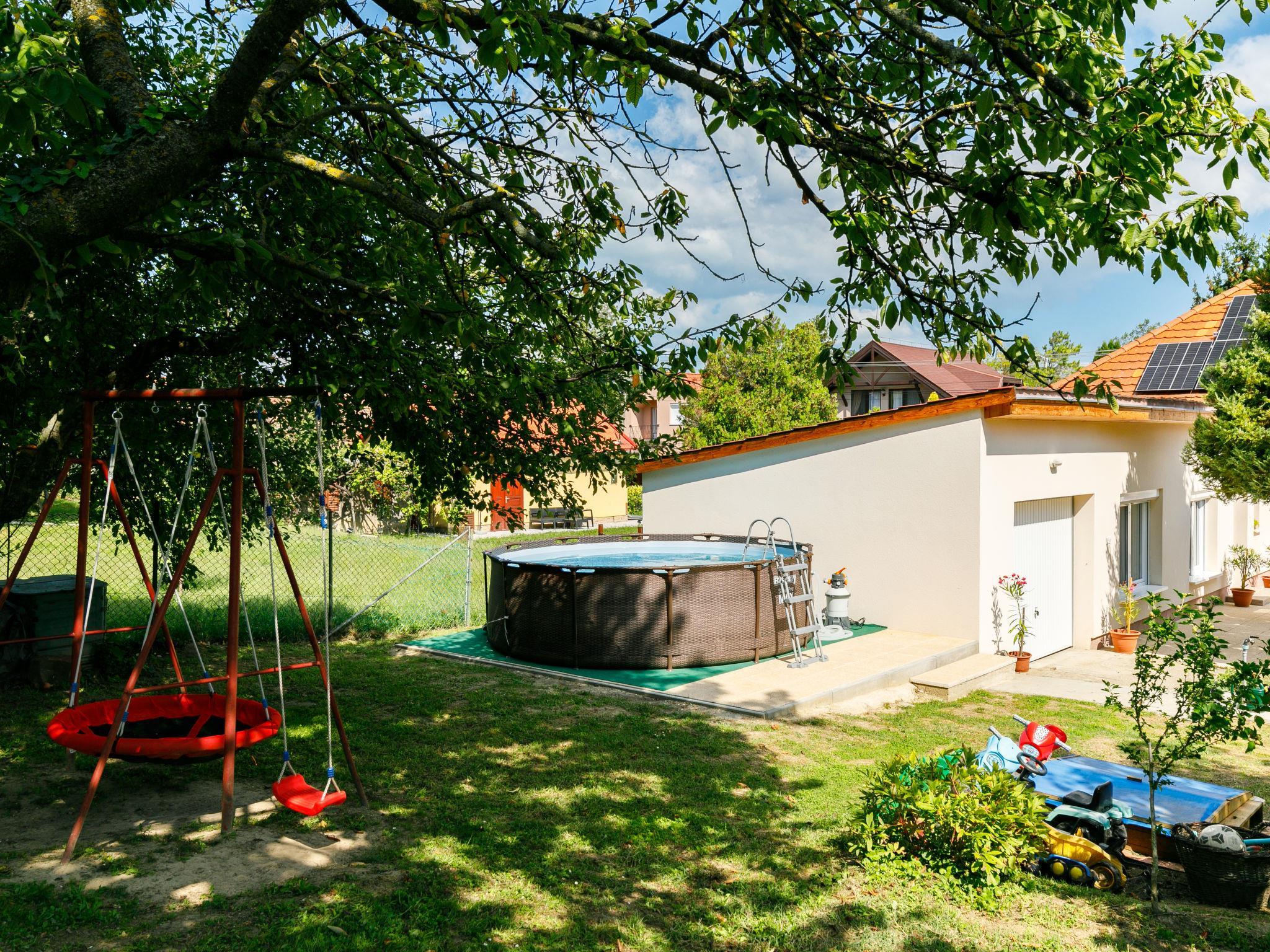 Fonyód 13 km from Balatonlelle: Small, cosy house "Cherry", renovated in 2021. On the outskirts, in a quiet position, 1.5 km from the lake, 1.9 km from the beach. For shared use: garden 600 m2 (fenced) flowers and trees. Private: swimming pool (above ground) (3 m diameter, seasonal availability: 01.Jun. - 15.Sep.). In the house: WiFi, central heating system, air conditioning, washing machine. Grocery 100 m, supermarket 2 km, restaurant 50 m, grass beach 1.5 km. Children's playground 50 m. Well-known lakes can easily be reached: Csisztapuszta thermal 6 km.