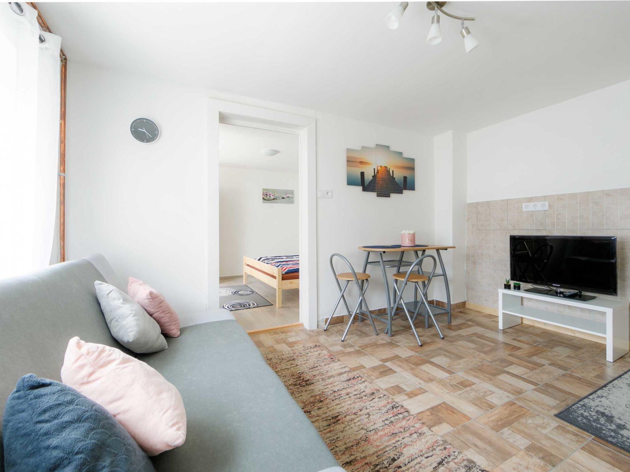 2-room house 40 m2. Fully renovated in 2021, comfortable and modern furnishings: living/sleeping room with 1 pull-out bed and cable TV. 1 room with 1 french bed (160 cm, length 200 cm). Open kitchen (3 hot plates, oven, microwave, freezer). Shower/WC. Heating, solar energy heating. Terrace 20 m2, patio. Terrace furniture, barbecue, deck chairs (2). Facilities: baby cot for up to 3 year olds. Parking. MA21000170