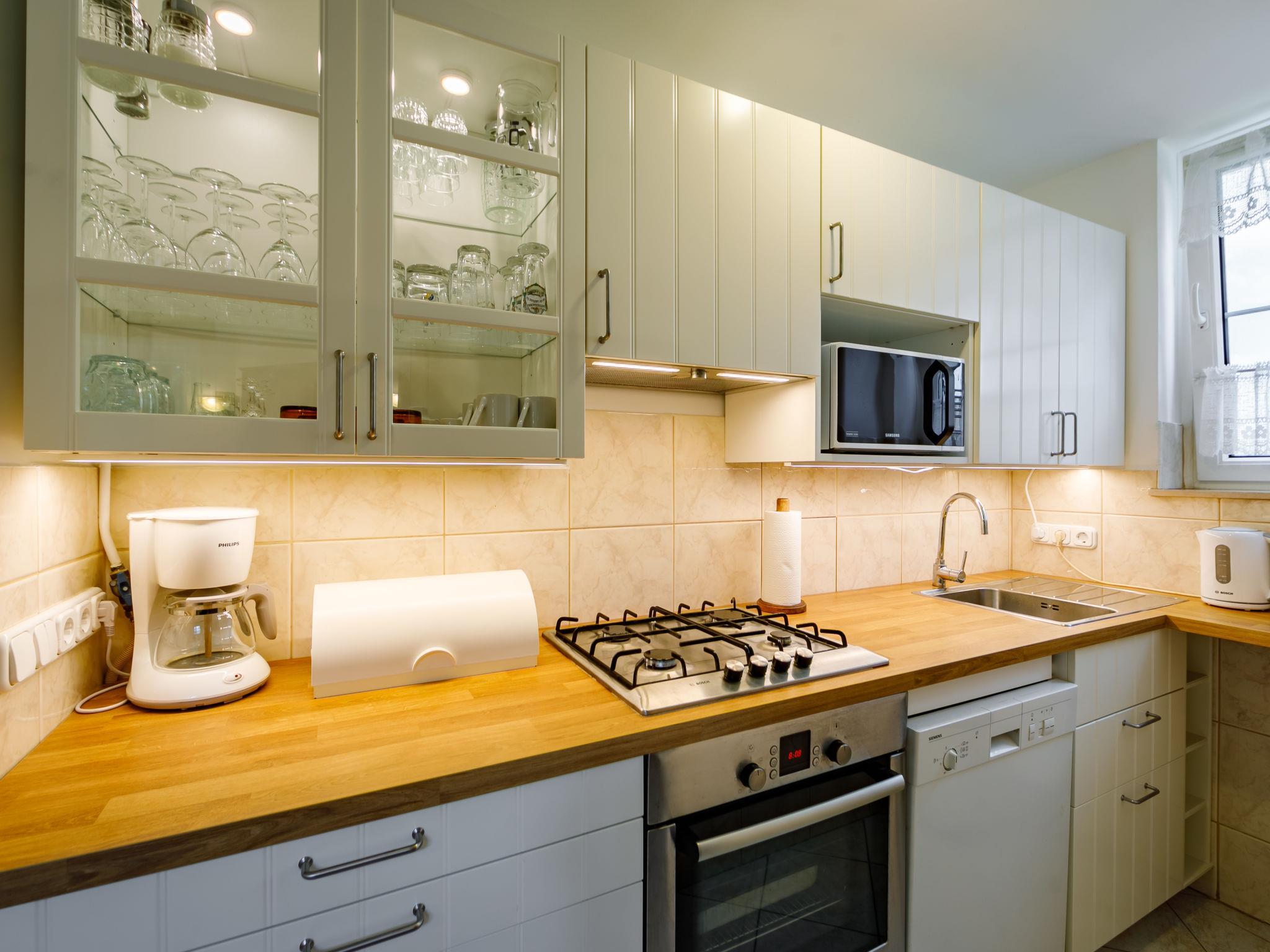4-room house 110 m2. Spacious, partly renovated in 2020, tasteful furnishings: living room with satellite TV and air conditioning. Exit to the terrace. 1 room with 2 beds. Open kitchen (4 hot plates, oven, dishwasher, microwave, freezer). Shower/WC. Upper floor: gallery. 2 rooms, each room with 1 french bed (160 cm, length 200 cm), air conditioning. Bath/WC. Large terrace 30 m2. Deck chairs (6). Facilities: washing machine. Parking (fenced 2 cars). Maximum 2 pets/ dogs allowed. Instead of an enclosed bedroom, some sleeping areas are located in an open-plan area (gallery, alcove, etc.). EG19018256