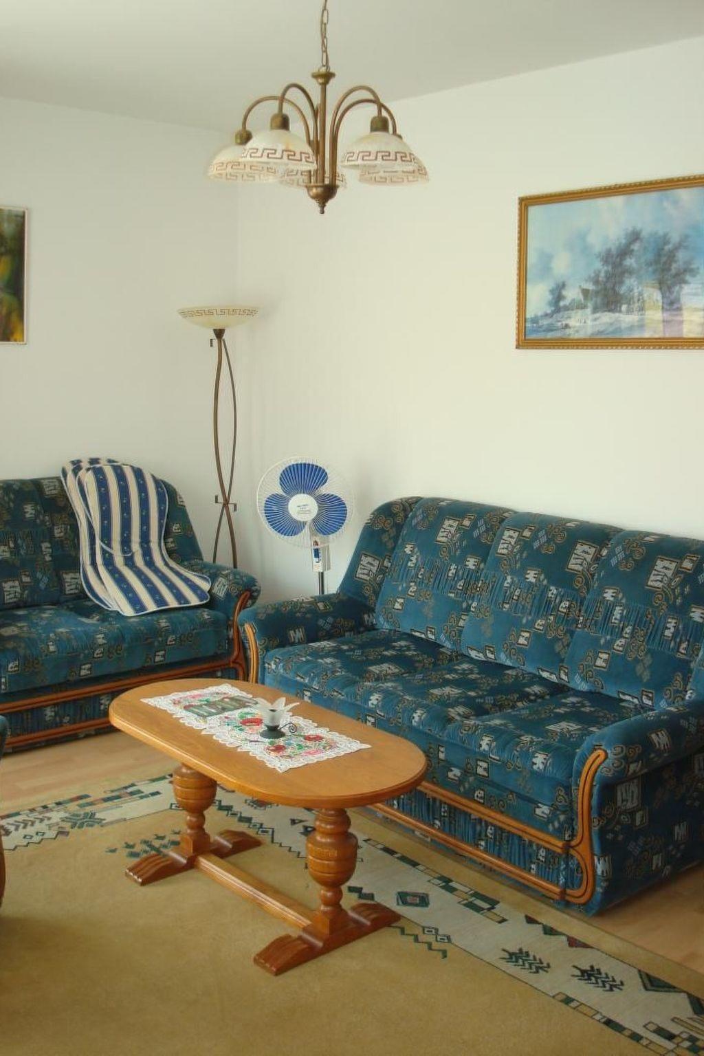 You enter the 51 sqm apartment through the elaborately designed hallway. From there, you reach the modern fitted kitchen, the living room, the bedroom, and the bathroom. The kitchen is perfectly equipped for self-catering. The bathroom is tiled from floor to ceiling and equipped with a bathtub. The bedroom is furnished with two beds and back-friendly innerspring mattresses. The living room can accommodate two additional people on the comfortable sofa bed if required. TV reception with German channels is also available. The living room opens onto the balcony overlooking the inner garden. The apartment meets the highest hygiene standards.
