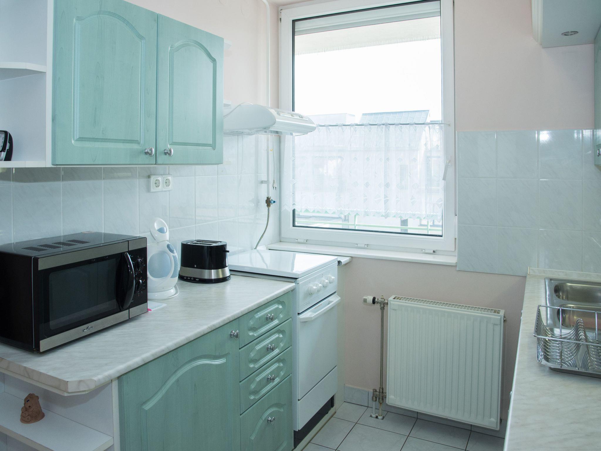 You can be at the thermal baths in a minute, so there is no parking problem for this flat. Heviz Thermal Spa is the most famous thermal spa in Europe and is therefore always very popular. Our flat is serviced on site. Lake Balaton is about 5 km away and the largest town on Lake Balaton, Keszthely, is also about 5 km away. The harbour there makes it possible to travel around the whole of Lake Balaton by boat. There are also very good excursion possibilities in Heviz and Keszthely. Attention! Please note that according to EU law, children of all ages must carry a child ID card. Please also note that we have to collect a tourist tax for the municipality for people aged 18 and over. This can vary in amount and is collected in cash when the keys are handed over. This may have to be presented at the borders and is mandatory for registration with the tourist office. Persons of any age without identification must be refused entry. Brief description Other : Non-smoking house Brief description 1Number of kitchens : 1Living room 1Other living room equipment : separable from the kitchen area by double door. Access to balcony Bedroom 1Other bedroom furnishings : wardrobe, bedside tables Please note that there is only one bedroom for two people. Third and fourth person sleep on sofa bed in the living room. Bathroom 1Other bathroom equipment : Toilet is in an extra room Kitchen 1Other kitchen equipment : Basic pots, cooking utensils Surroundings Sports facilities in the neighbourhood : Golf course, cycling toursSurroundings 1Excursion possibilities : Keszthely, Sümeg Castle, Lake Balaton, boat trip on Lake Balaton from Keszthely and much more. You will find suggestions in our brochure on site Description of the place : very attractive and international spa town with high standard Other sports and leisure facilities : thermal bath. Garden and outdoor facilities Leisure facilities at the property : Separate fitness room, solarium