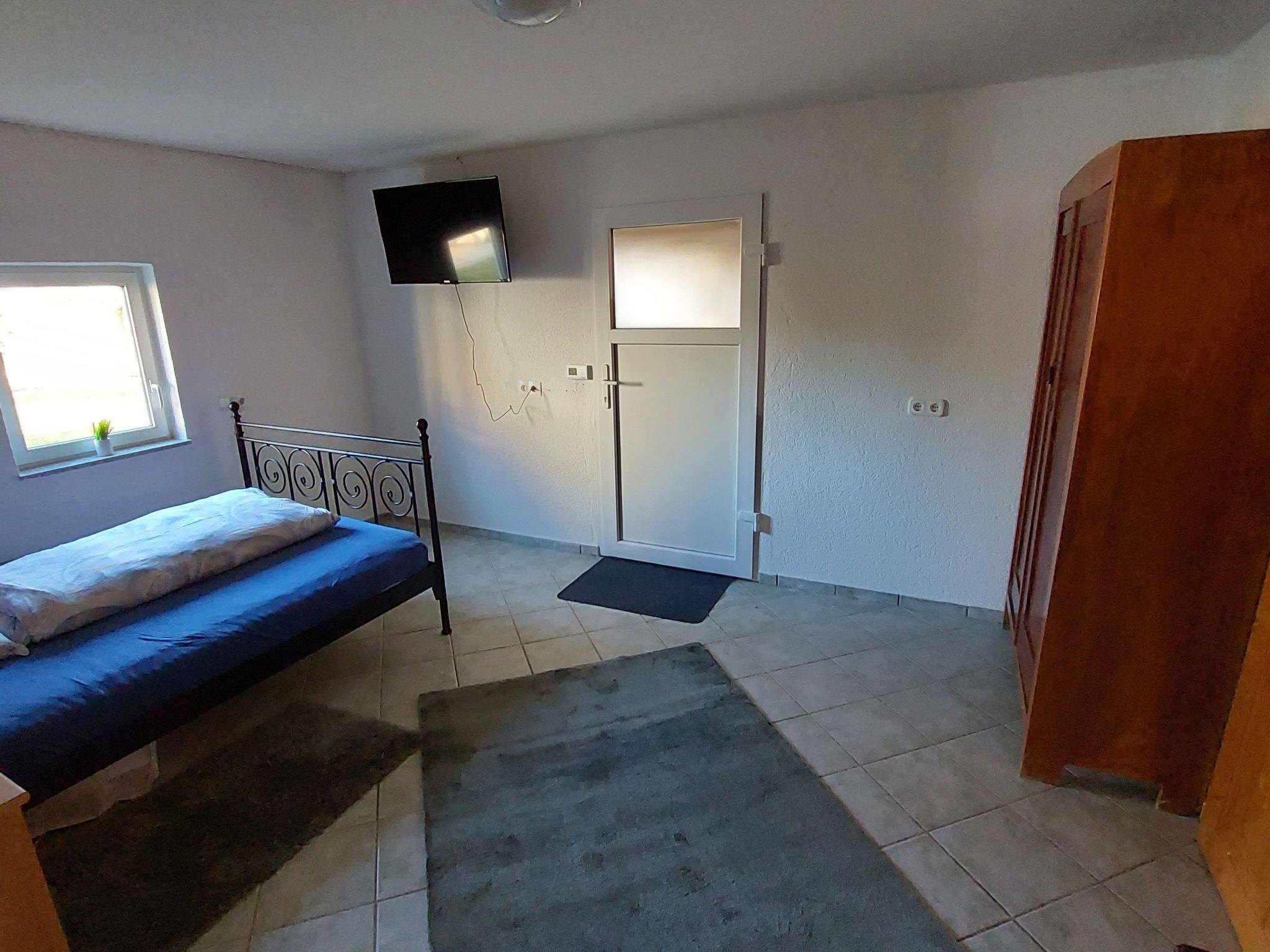 Fully furnished, with kitchen-living room, kitchenette with dishwasher, cooker and hob, microwave, fridge, kettle, large bedroom with double bed 1.80 m, wardrobe, chest of drawers, Smart TV, WiFi, bathroom with large shower and WC. Parking in front of the door, shady terrace, 2 entrances, separate holiday home, large garden, all fenced.