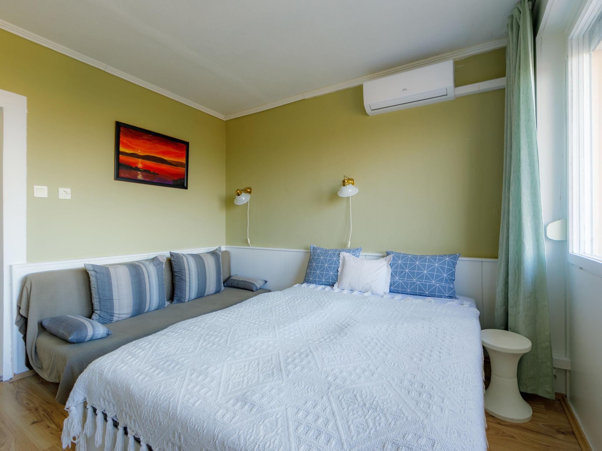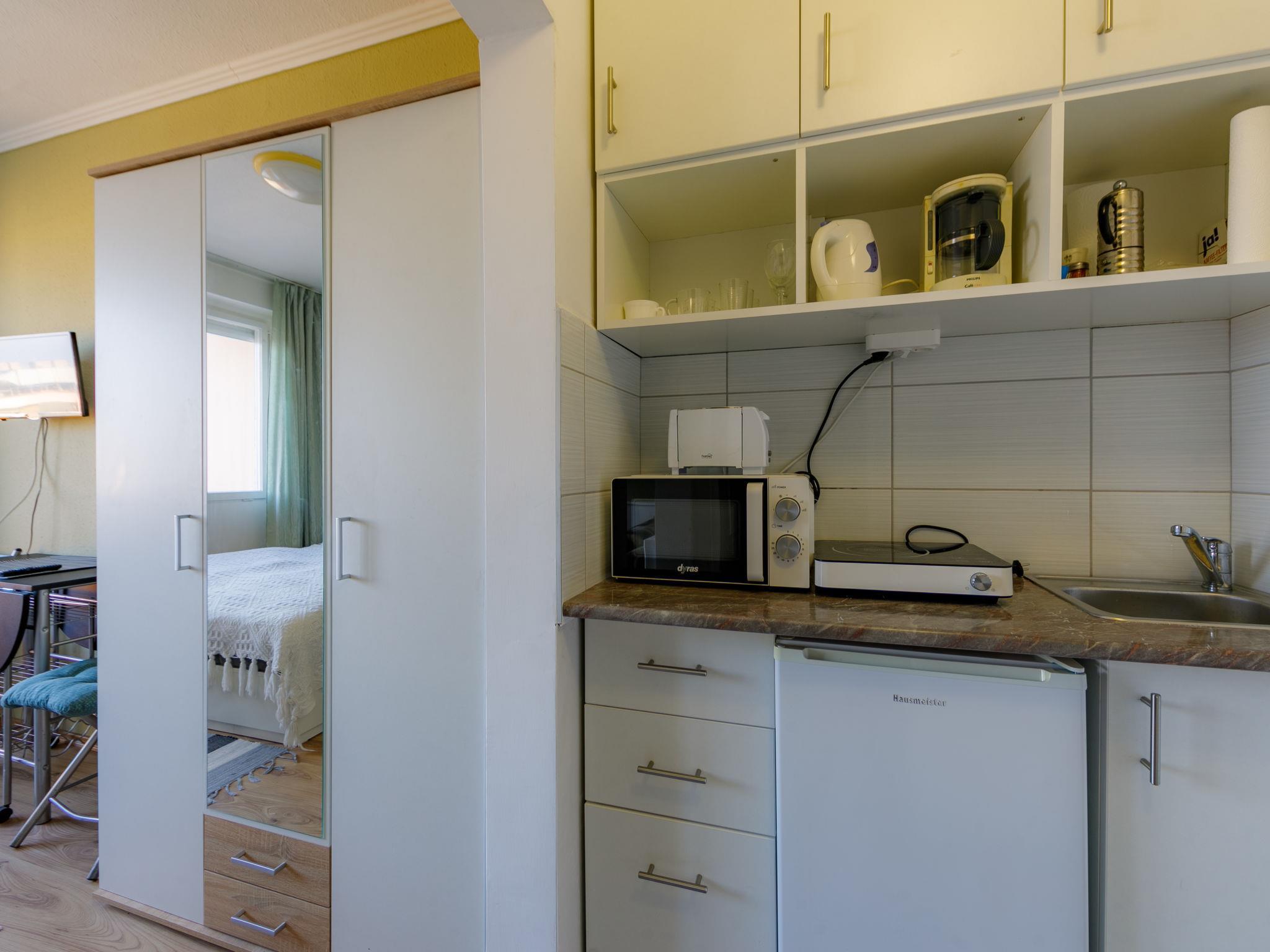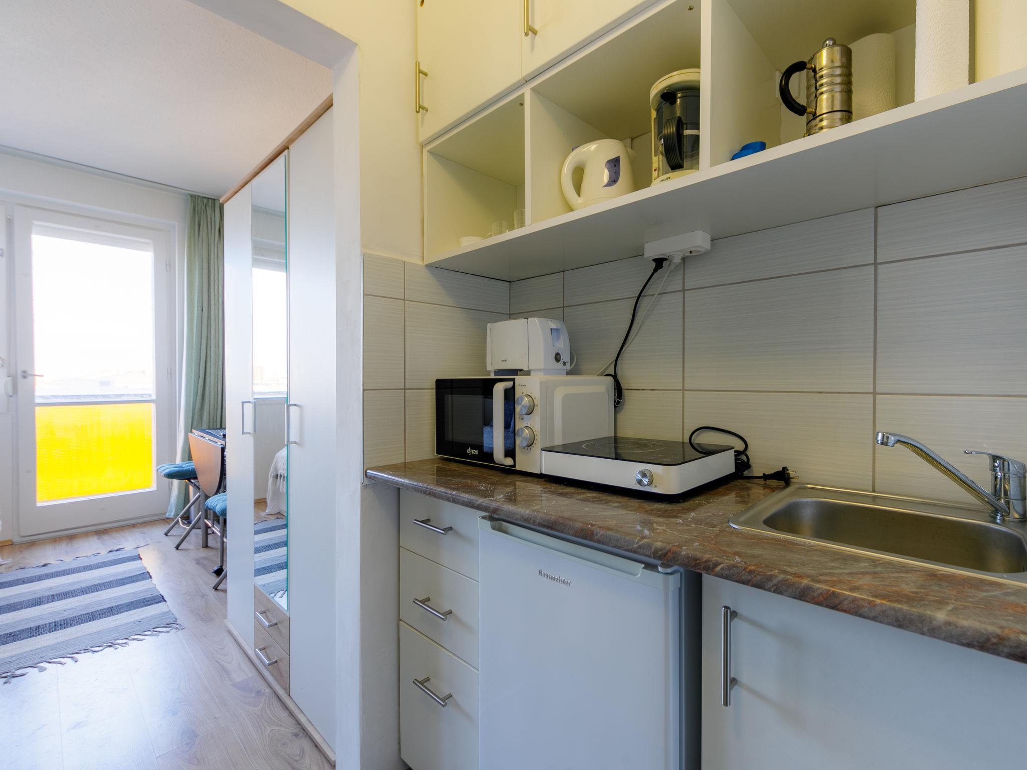 1-room studio 20 m2 on 6th floor. Fully renovated in 2019, cosy furnishings: 1 room with 1 double bed (160 cm, length 200 cm), 1 pull-out bed (1 pers.), cable TV and air conditioning. Exit to the balcony. Small, open kitchen (2 hot plates, microwave). Shower/WC. Small balcony. Balcony furniture. Beautiful view of the lake. MA20006152