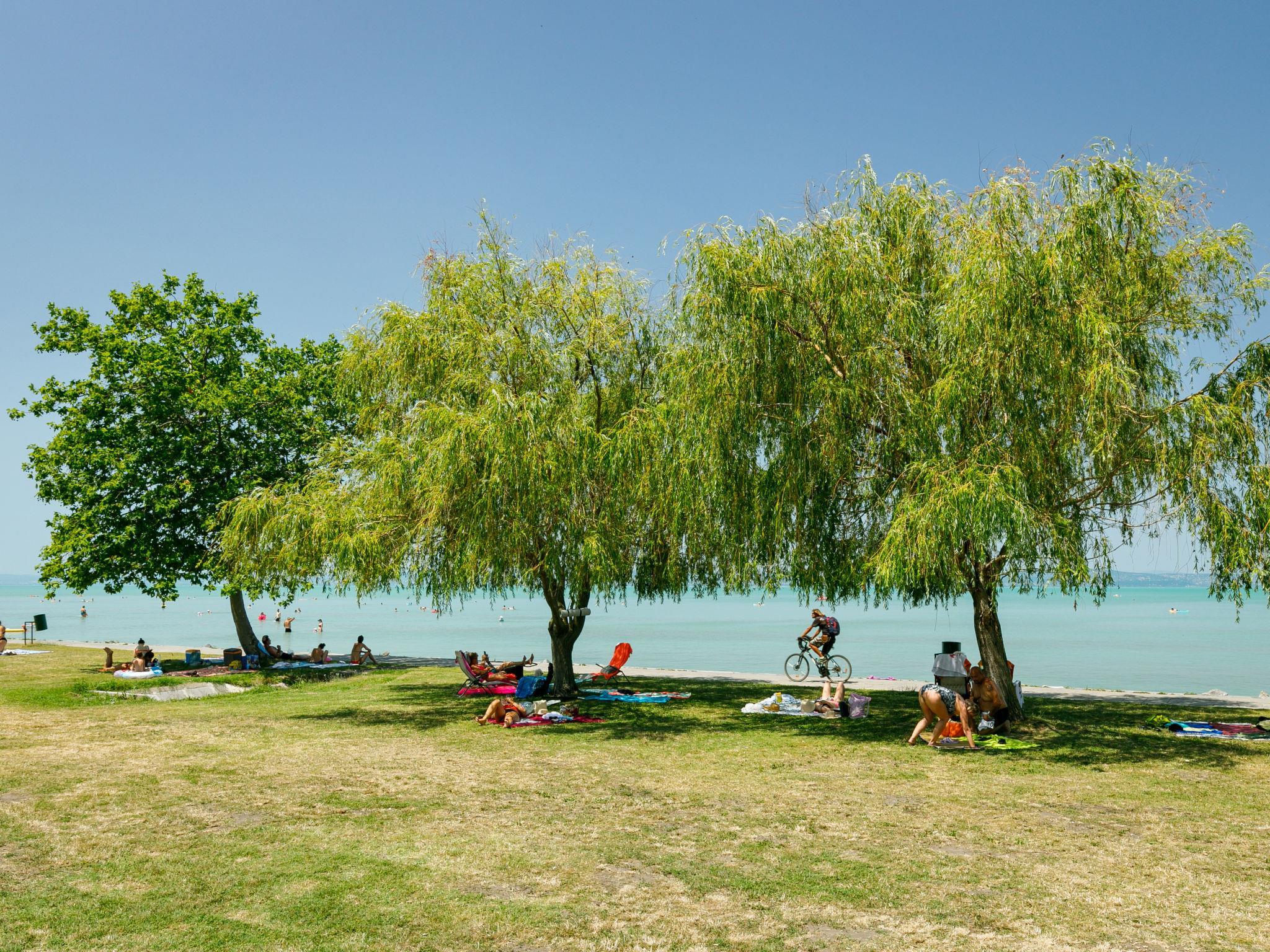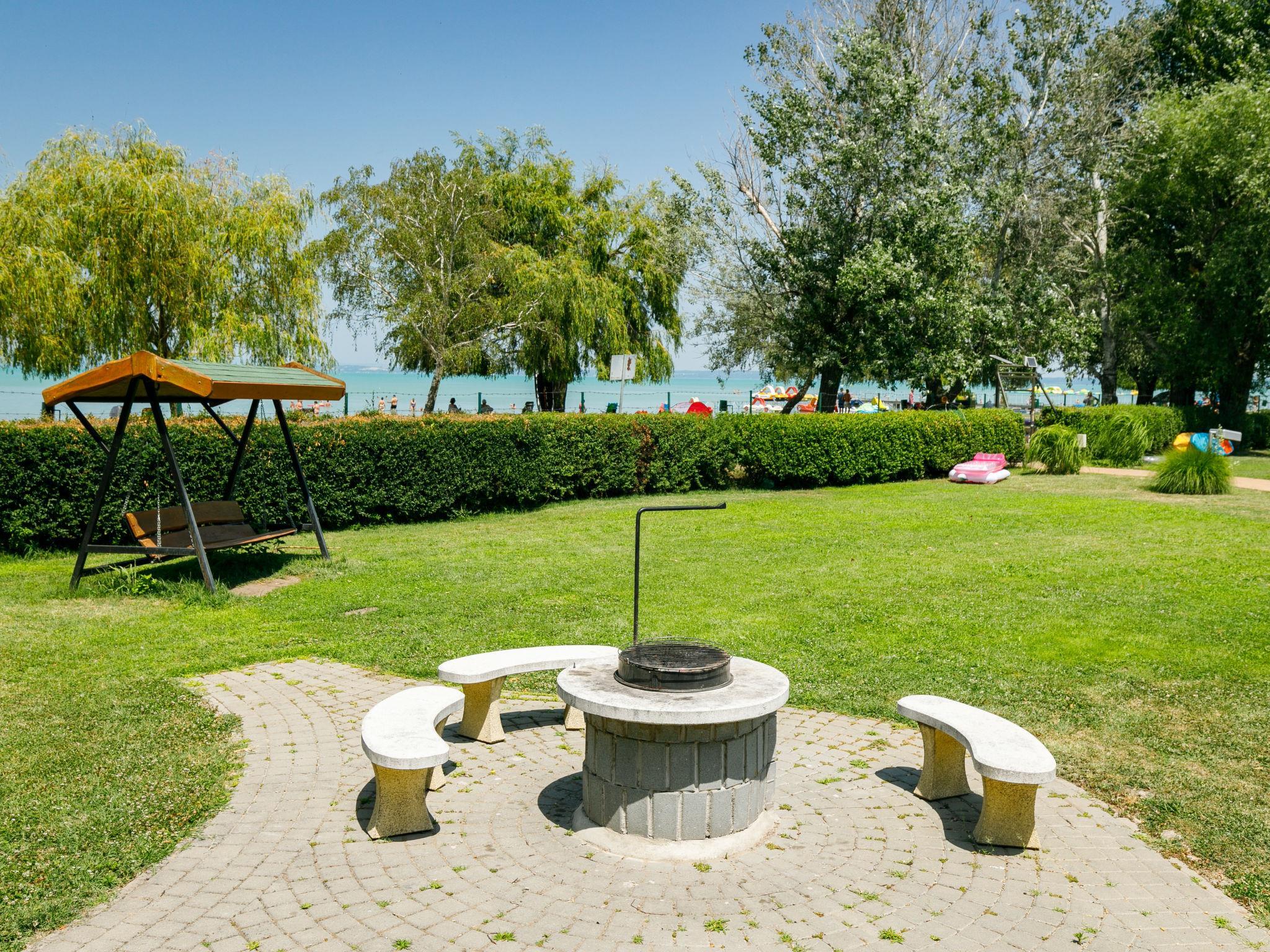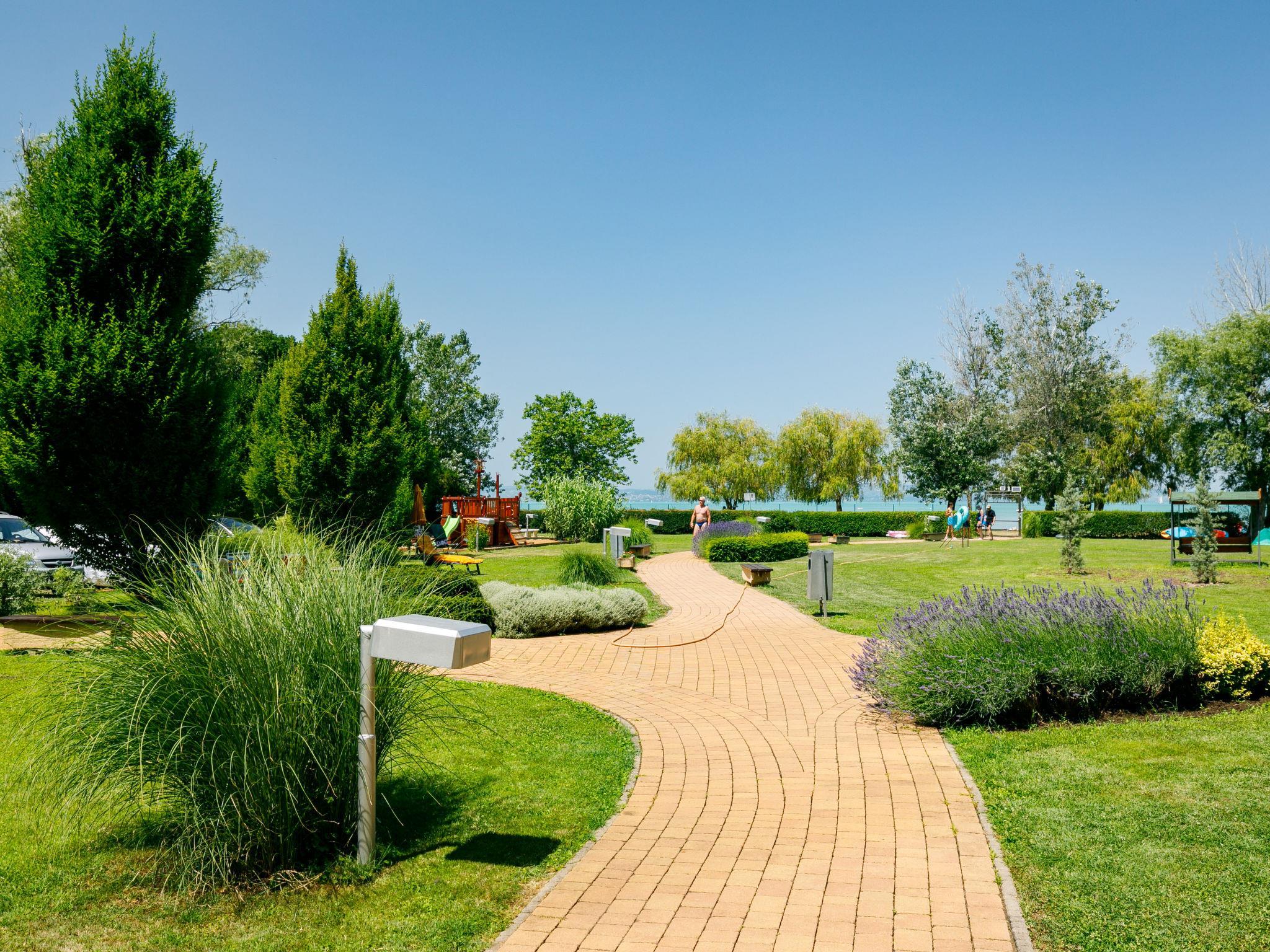 Siófok: Apartment block "Golden Gate". 50 m from the lake, 100 m from the beach, direct access to the beach. For shared use: park 2'000 m2, well-kept garden. Barbecue, fireplace, children's playground (slide, swing, sandbox). In the complex: reception, lounge with TV, WiFi, sauna (extra). Hot tub (extra). Table tennis, lift. Parking space n 11. Indoor swimming pool 500 m. Fishing possibilities 50 m. Please note: fishing [permit required].