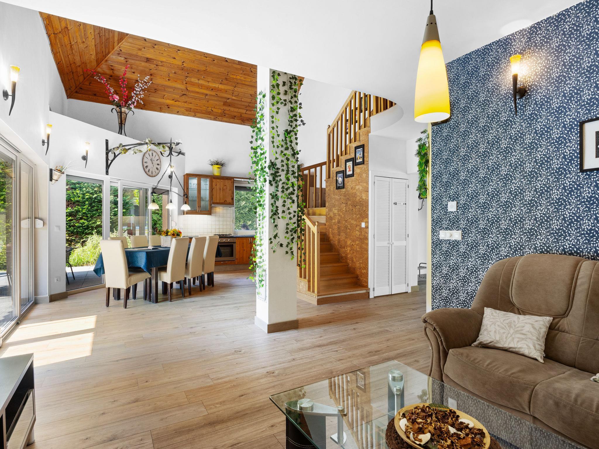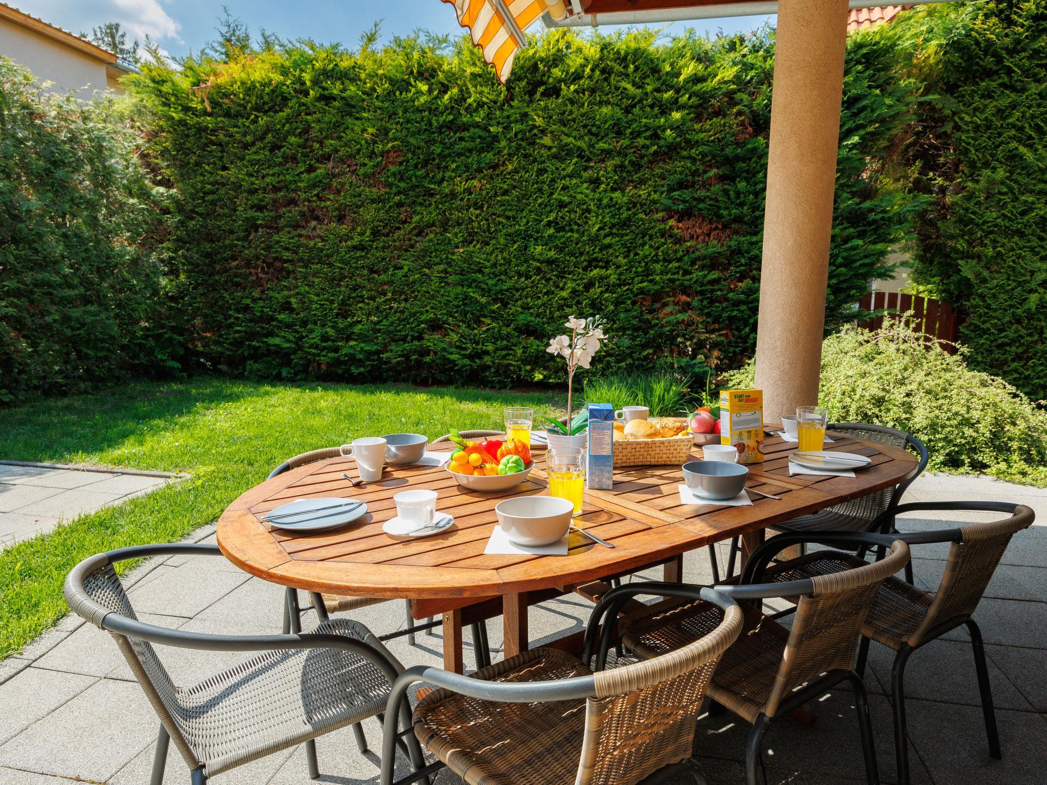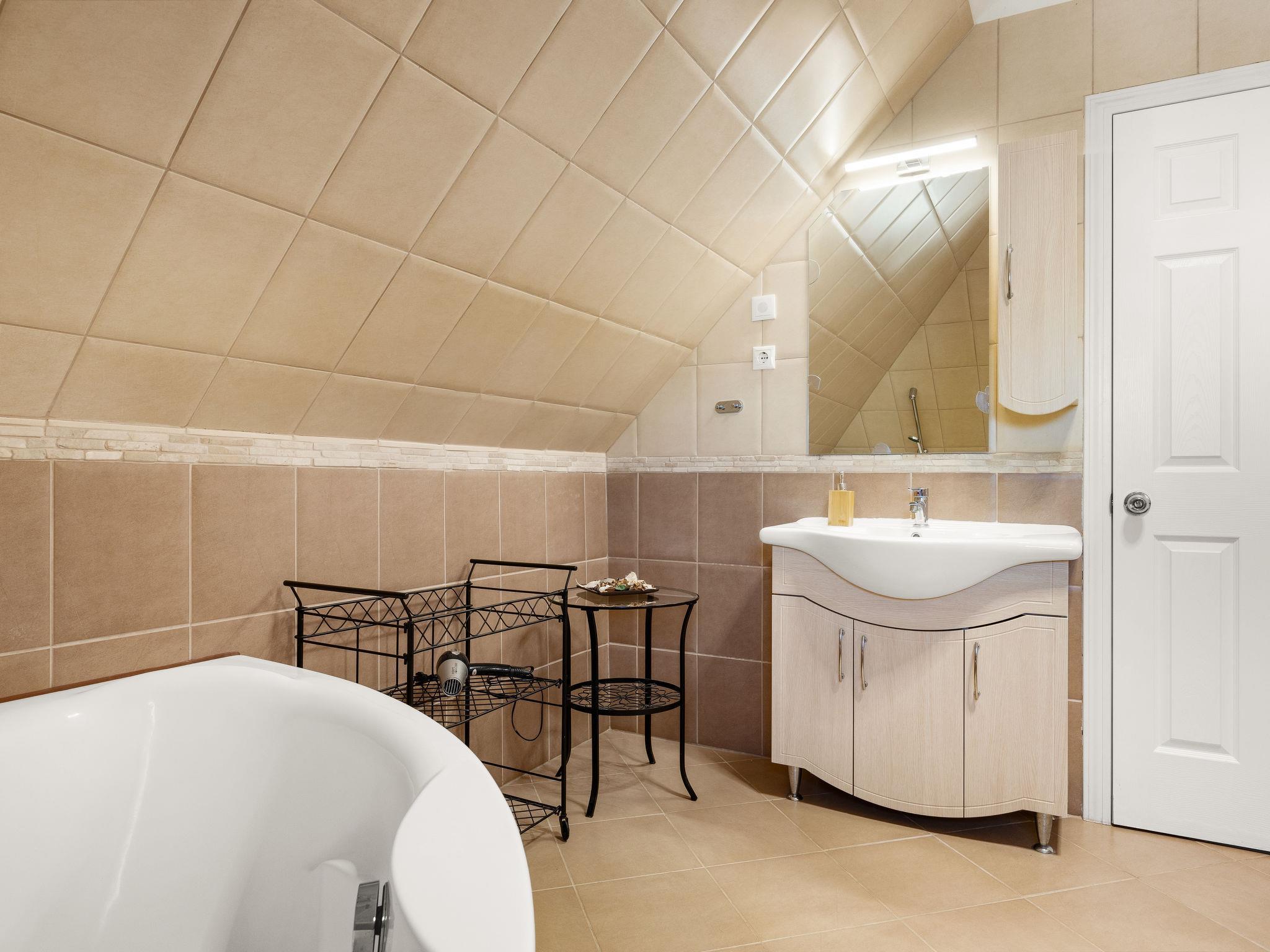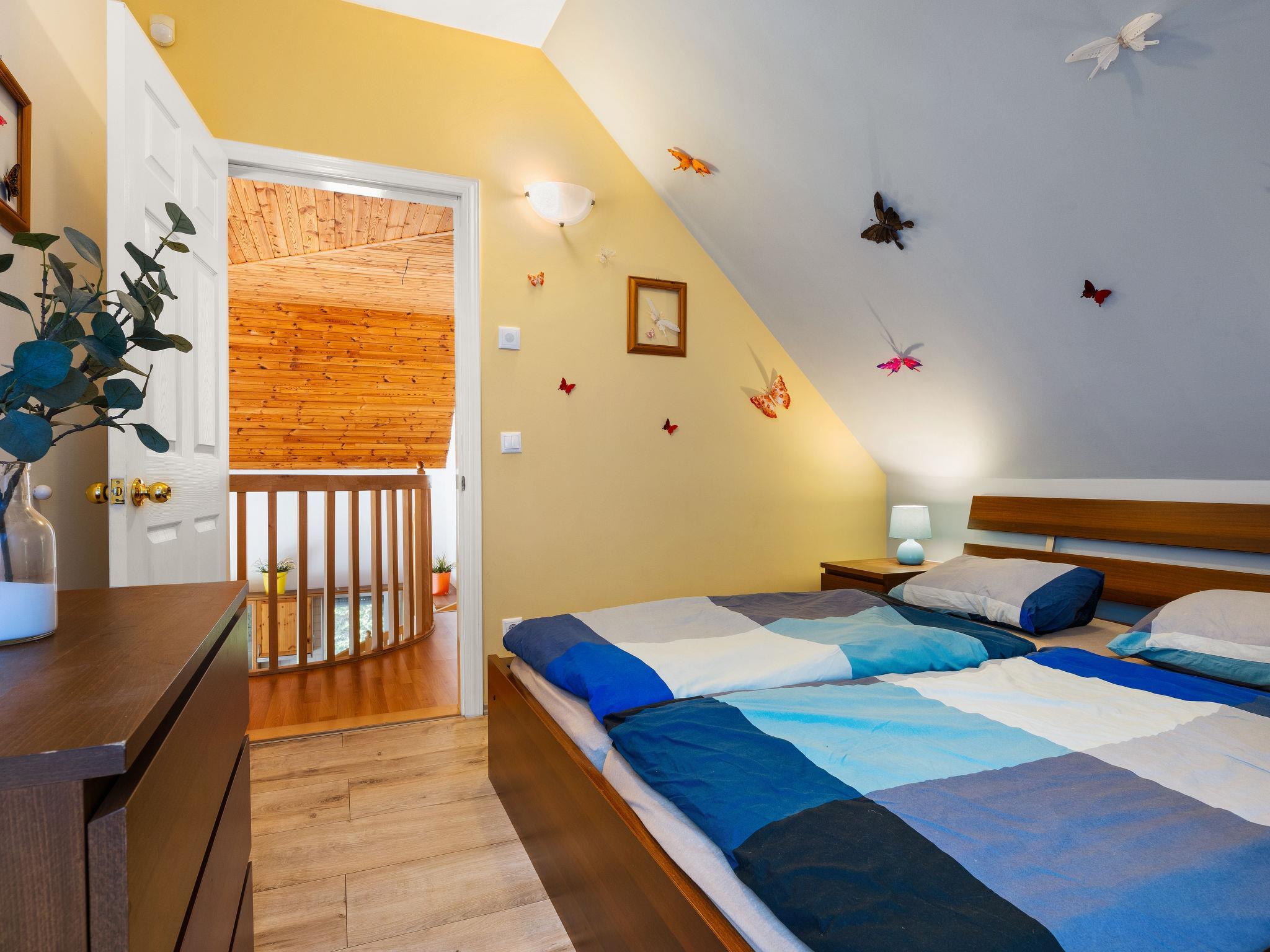 Szabadifürdo 4 km from Siófok: Beautiful, cosy villa "Perla", built in 2007, renovated in 2023. 4 km from the centre of Siofok, on the outskirts, in a quiet, sunny position, 500 m from the lake, 850 m from the beach. Private: property (fenced), beautiful garden, lawn for sunbathing, swimming pool kidney shaped (3 x 4 m, depth 120 cm, seasonal availability: 01.May. - 15.Sep.) with internal staircase. Fireplace. In the house: WiFi, sauna (extra). Hot tub (extra). Central heating system, burglar alarm system. Parking (for 2 cars) on the premises. Shop 1 km, supermarket 3 km, restaurant 1 km, bus stop 1 km, railway station "Siofok-Szabadifurdo" 1 km, grass beach 500 m, thermal baths 1.5 km. Sports harbour 4 km, tennis 1 km, riding stable 10 km, cycle lane 300 m, children's playground 800 m. Nearby attractions: Siófok Giant Wheels 5 km, Aquapark Siófok 2 km, Adventure Park Zamárdi 12 km, Siófok Bella Zoo 1.5 km, Kereki Dinosaurs Park 30 km, Water Tower Siófok 5 km. Please note: railway line closeby.